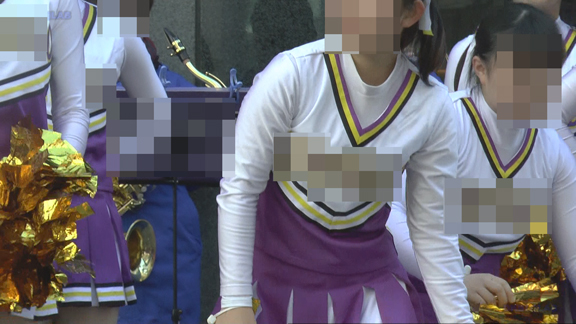 白・赤・青のチアユニ娘の応援演技のシーンから。