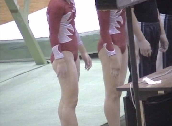 赤と白のレオタードを着たチームを中心に撮影。