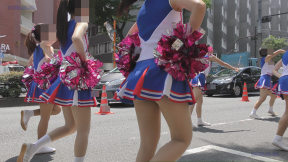 37分ごろより青・白・赤ユニのバトンチア娘たちの行進のシーンへ!バトンを足にくぐらせるシーンなどタマラナイシーンが幾度ともなく繰り返されます!!