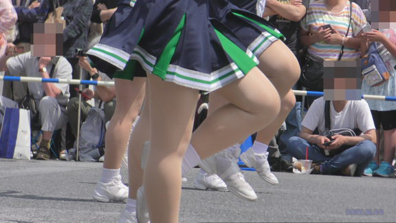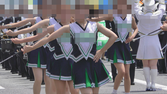 14分ごろより同チームの黒・白・緑ユニのバトンチア娘たちの行進のシーンへ!こちらも同様のパレード模様が繰り広がります!