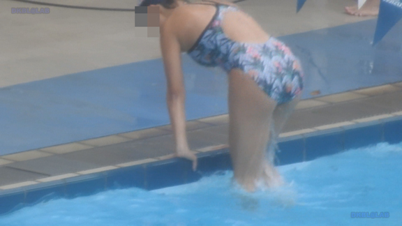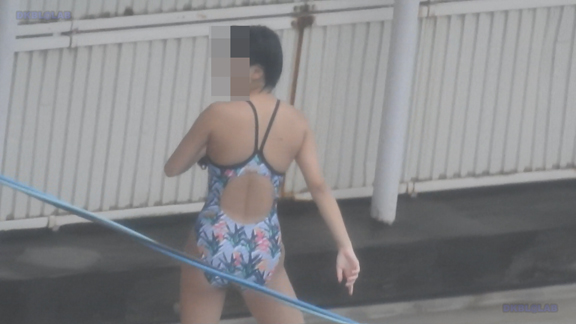 そして3分ごろより新人さん達の練習シーンへ!紺色セパレート水着娘たちが初々しい泳ぎを続けてまります。