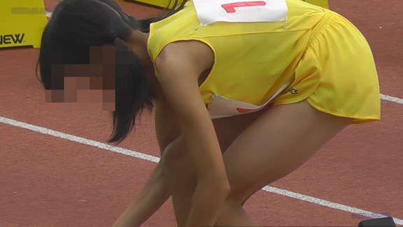 3分ごろより短距離走のシーンへ、スタートの出走を待つ多数のビギナーからちょい上娘の皆さんをじっくりと!