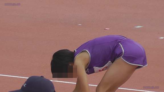 3分ごろより短距離走のシーンへ、スタートの出走を待つ多数のビギナーからちょい上娘の皆さんをじっくりと!