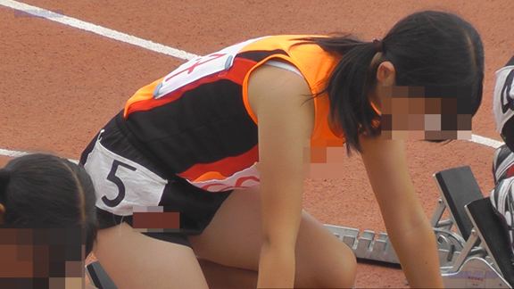 19分ごろより再び短距離走シーン、スタートの出走を待つ多数のビギナーからちょい上娘の皆さん!