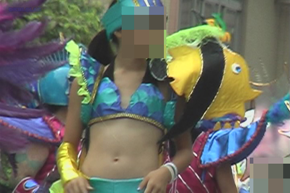 色鮮やかなサンバ衣装を身にまとった娘たちの華麗なファフォーマンスを存分にお楽しみいただけます!ベテランの皆さんから、もじもじ恥ずかしそうにリズムに乗っているビギナーの皆さんまで様々なパレード模様が伺えます!