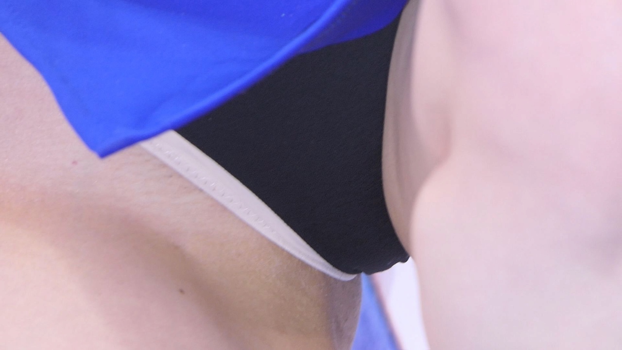 どうも主催者から黒Tバックの指導があったみたいで 青キャミちゃんアンダーショーツを着用しての登場
