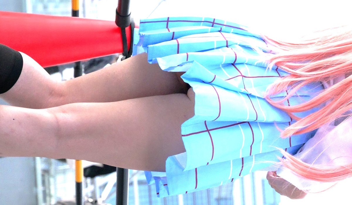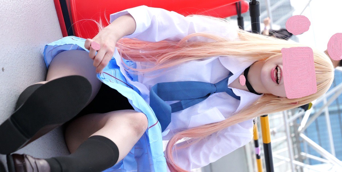 ならばとレイヤーちゃんは座るものの、下から少し見えてます。