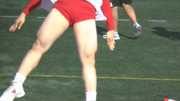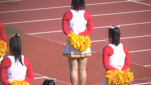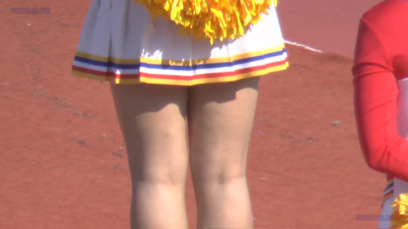33分ごろより別会場へ、フィールドでの白・赤チアユニ娘の応援の模様へ!