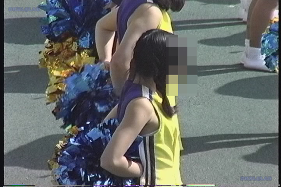 続いて37分ごろより別会場へ、フィールドでの黄・紫チアユニ娘の応援の模様へ!直立不動で見守ってるチアユニ娘のワキの白いものがイイかんじ!