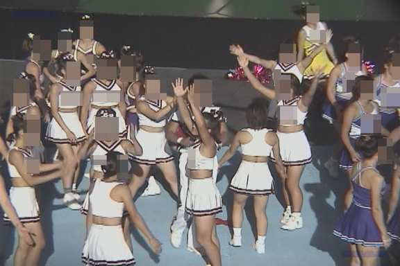 青・白チアユニ娘、白チアユニ娘、黄・白チアユニ娘、紫・白チアユニ娘など様々なチアチームが登場!