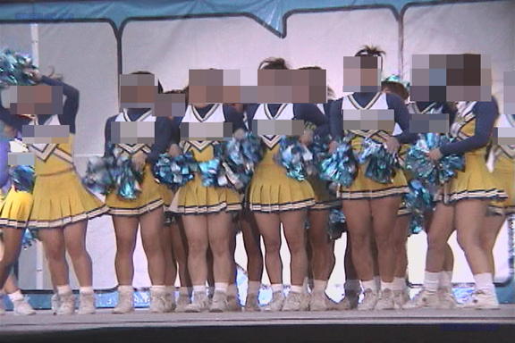 こちらのシーンは音声にノイズが入っておりますが画質は良好!そして42分ごろより別会場へ、平場での黄・白チアユニ娘の応援演技です!
