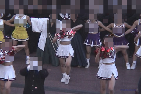 黄・白チアユニ娘、紫・白チアユニ娘、青・白チアユニ娘、白チアユニ娘など様々なチアチームが登場!ラストシーンでは全てのチームで大合唱!目頭が熱くなって参ります!