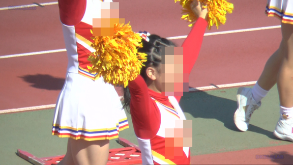 続いて16分ごろより別会場へ参ります。白チアユニ娘たちのバトン演技シーン、時折お目見えするピンクのVアンダーがかわいい!!