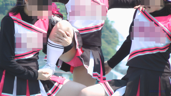 18分ごろからは演技前の青・白・赤チアユニ娘たちの演技前の準備シーンが素晴らしい!地面に座って足を上げ青Vアンダーが○見え!!!スゴイシーンです!