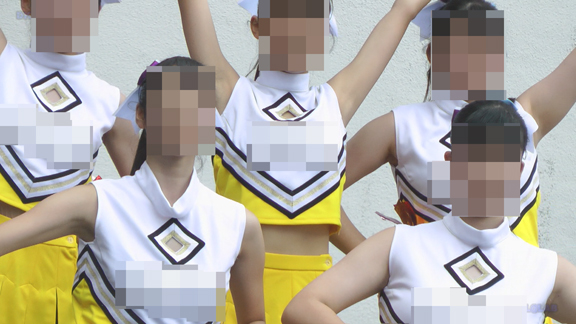 白・青チアユニ娘の平場演技シーンからスタートです!