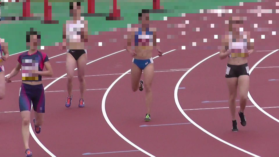 100障害と短100どちらもカメラがゴール斜め後方の位置から撮影。スタートをほぼ正面から捉える画角でカメラに向かって走ってくる感じです。なのでクラウチングも正面から。
