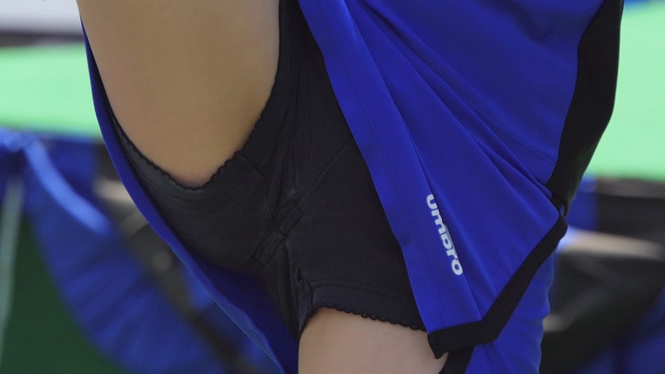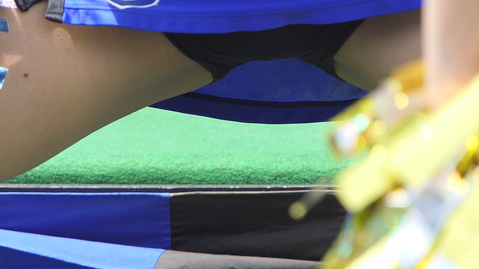 青スカート&黒スパッツ、キックも高くたまにハミパンも有り素晴らしい完成度です。