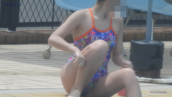 飛び込み台付近で休憩するV型キョウスイ娘たちにクローズアップするシーンから!少し息を切らしながらV型キョウスイのチームメイトとおしゃべりをする姿がカワイイ!