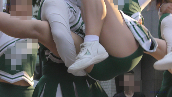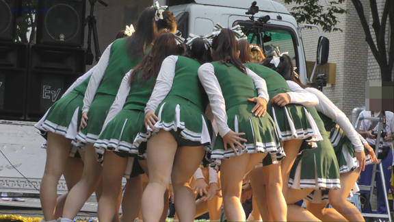 続いては29分ごろより白・緑チアユニ娘の同会場の平場演技シーンへ!演技中のハイキック・回転シーンではお目見え連発!!!緑Vアンダーがコンニチワンワン!!!
