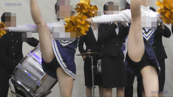 続いて18分ごろより同会場の平場演技シーン、紺・白チアユニ娘の登場!短め紺スパが激しく舞っております!