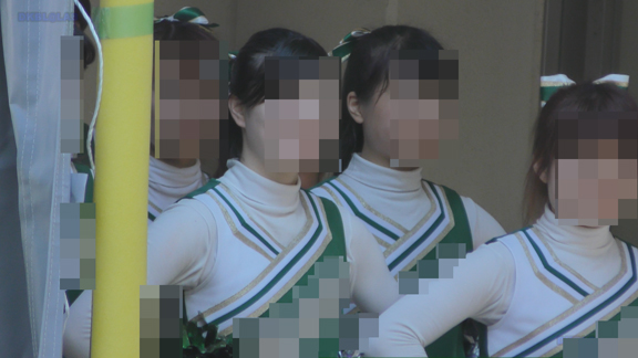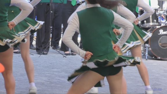 30分ごろよりラストまで別会場の平場演技シーン、緑・白チアユニ娘の登場!独特の応援演技の最中、緑Vアンダーが頻繁にお目見え!!