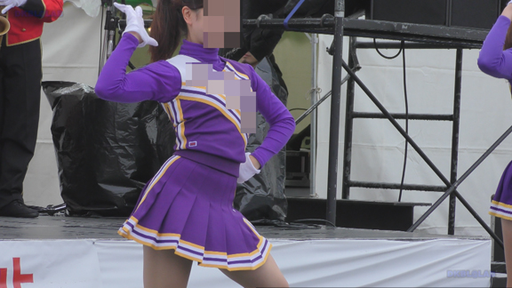 12分ごろより別会場の平場応援演技シーンへ、紫・白チアユニ娘の登場!短め紫スパがコンニチワ~!