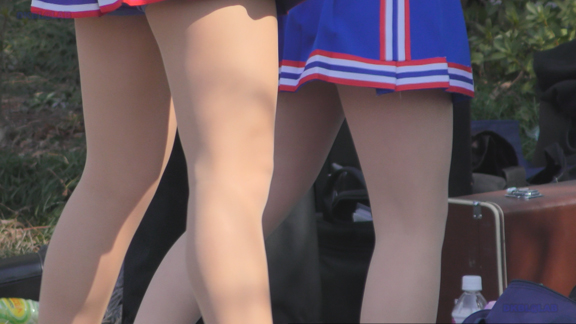 続いては同場所の平場応援演技シーンで赤・白チアユニ娘の登場!こちらも激しい応援演技シーン!短め紺スパが激しくお目見え!