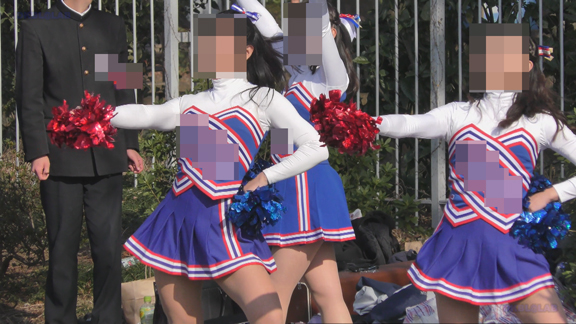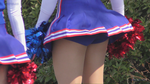 続いては同場所の平場応援演技シーンで赤・白チアユニ娘の登場!こちらも激しい応援演技シーン!短め紺スパが激しくお目見え!