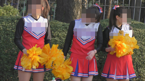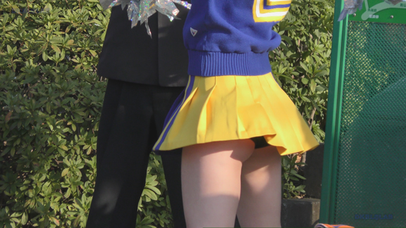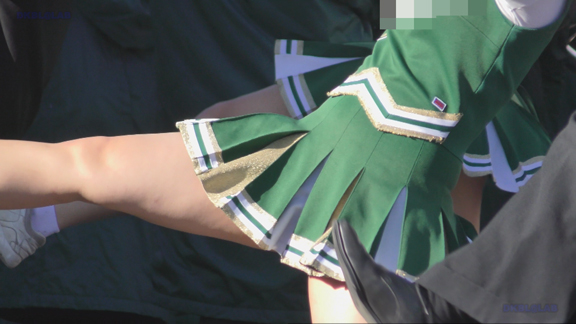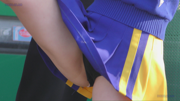 激しい応援演技シーンに紺Vアンダーも激しくお目見え!激しい応援でスコートからもれちゃった上インナーをお直しするシーンがとってもカワイイ!