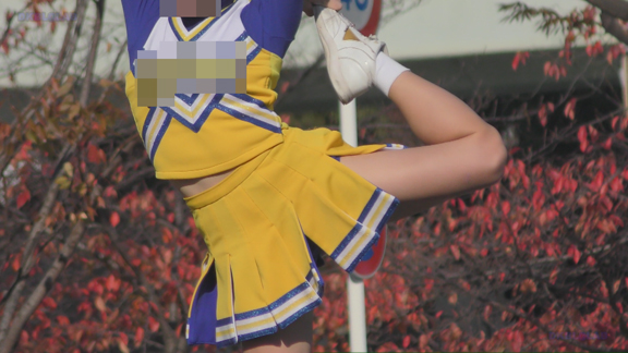 応援演技終了後の記念撮影のちお片付けシーンの表情がすごくイイ!キュートな紺Vアンダーとツルテカ短め青スパアンダーもバッチリ!