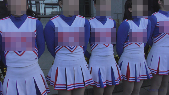 白・青チアユニ娘と青・白チアユニ娘の平場での合同応援演技の模様から始まります!