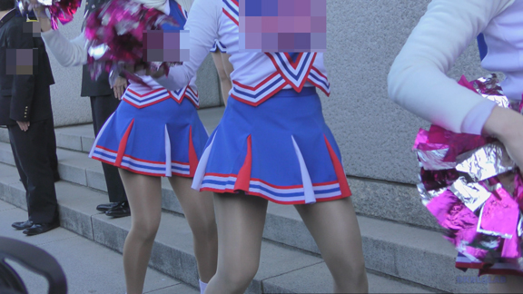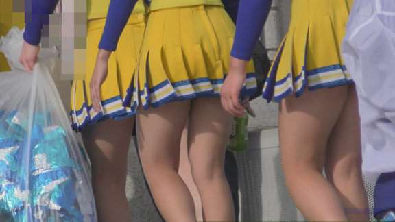 応援演技終了後の記念撮影のちお片付けシーンの表情がすごくイイ!キュートな紺Vアンダーとツルテカ短め青スパアンダーもバッチリ!