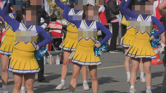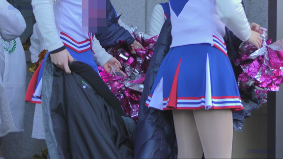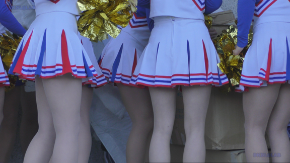 白・青チアユニ娘と青・白チアユニ娘の平場での合同応援演技の模様から始まります!