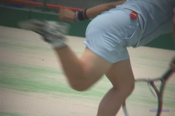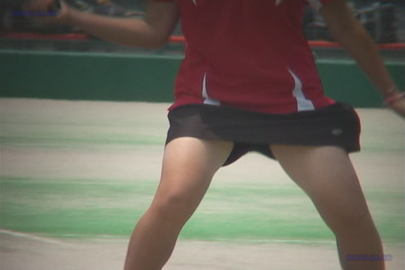 8分ころより黒ユニ娘と薄いグレーワンピースユニ娘との試合模様へ。ワンピースユニ娘の力強いサーブ・スマッシュにお目見えする短いくろぱんが素晴らしい!!
