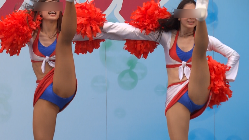 お馴染みのプロサッカーチーム専属のチアチームのステージ演技。