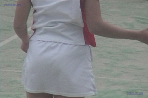 黒タイトユニ娘と白タイトユニ娘との試合模様、双方ともインナーラインバッチリ!