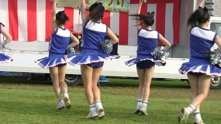 青の衣装で元気いっぱい、スタンツやダンスを見せてくれます。