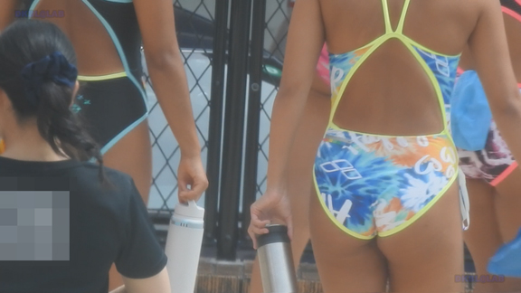 肌寒いせいか上はジャージ、、、しかし下はVキョウスイという何とも可愛らしいじゃありませんか!こちらも一列に並びミーティングののち髪を一斉にスイムキャップにIN!ジャージからVキョウスイが現れる様は感動モノ!そして水中へ!