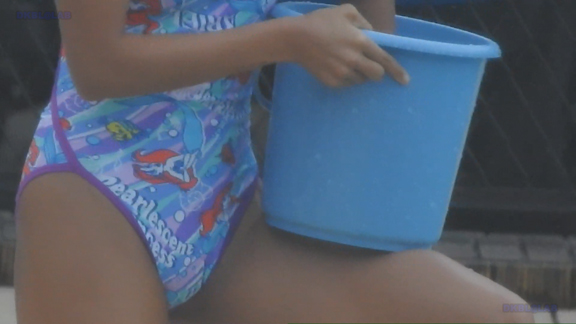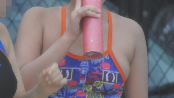 雨の降る中での練習会シーンからスタートです!飛び込み台付近でVキョウスイ娘たちが練習合間の休憩タイム、カラフルなキョウスイ娘からシンプルなキョウスイ娘までじっくりと!