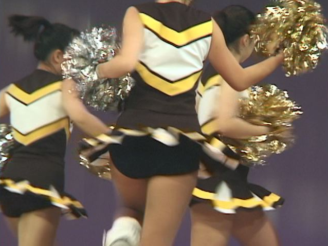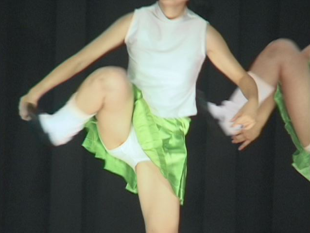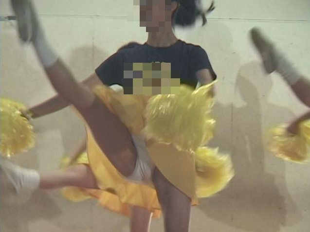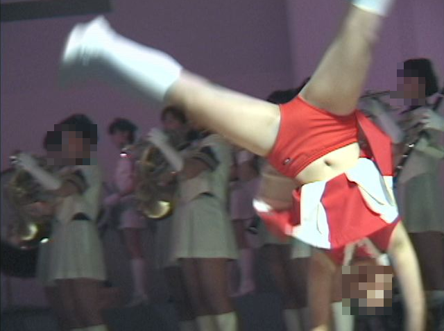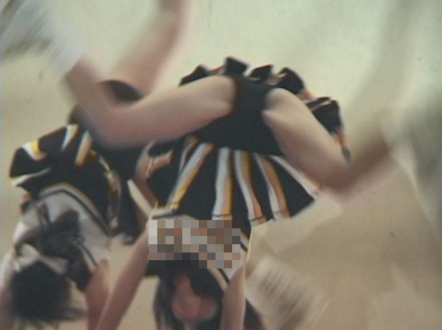キック、ターンなどスカートが舞いアンスコ、チアショーツがモロ見えです。