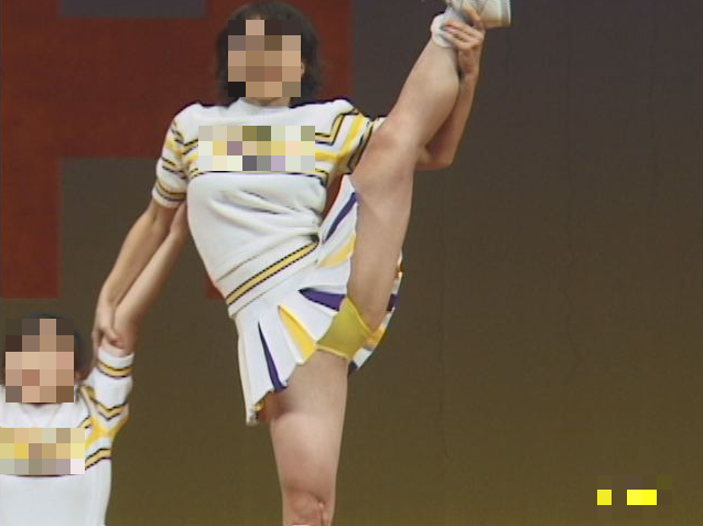 次の団体も最初は公式?ユニフォーム着用でチアリーディングで始まります。スタンツ、ジャンプ、ハイキックなどチア技を披露。