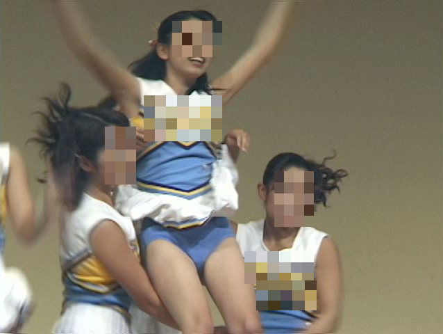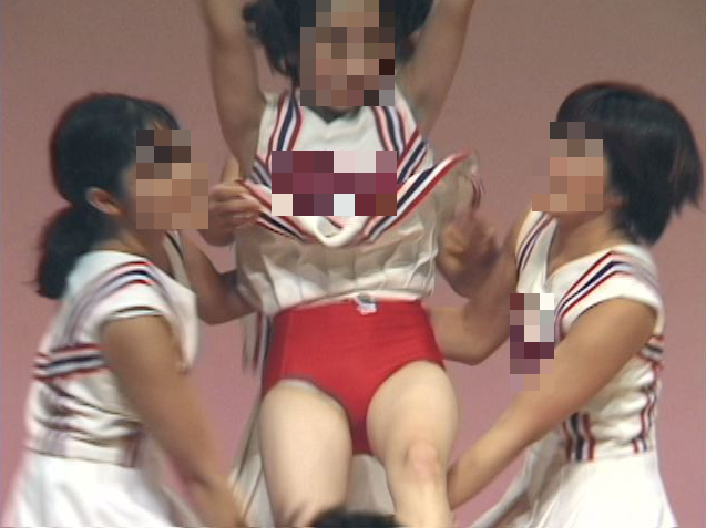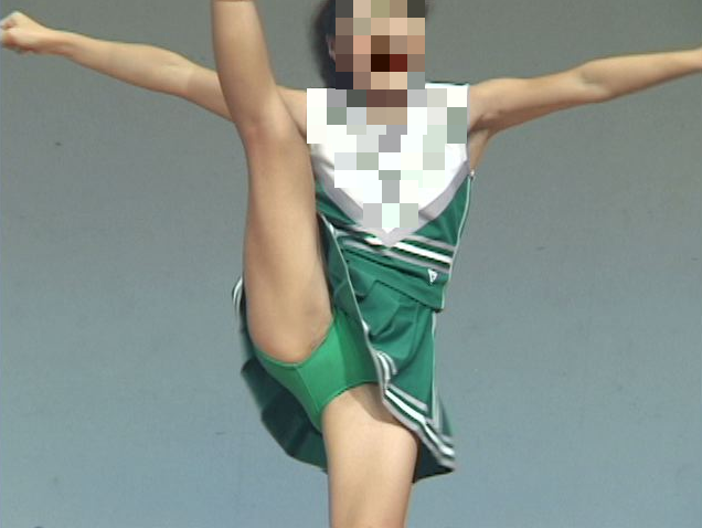 ハイキック、ターン、スタンツ、などなどチア技を披露。