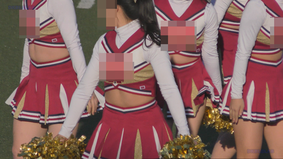 大きな会場でのチアユニ娘の演技シーンから始まり2分ごろより白・紫チアユニ娘の応援シーンへ。