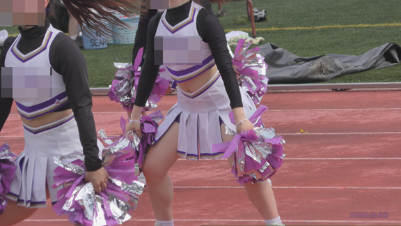 ハーフタイムではポンポ・ンバトンなど様々な手具に持ち替えて応援アピール!短め紫スパもイイ感じにお目見え!!