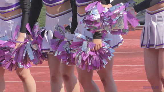 ハーフタイムではポンポ・ンバトンなど様々な手具に持ち替えて応援アピール!短め紫スパもイイ感じにお目見え!!