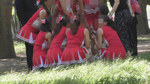11分ごろよりこちらも応援前準備の緑・白チアユニ娘のシーンへ。こちらも黒アンダーがとってもプリティー!紺・白チアユニ娘も平場応援演技シーンと織り交ぜながら進行して参ります。