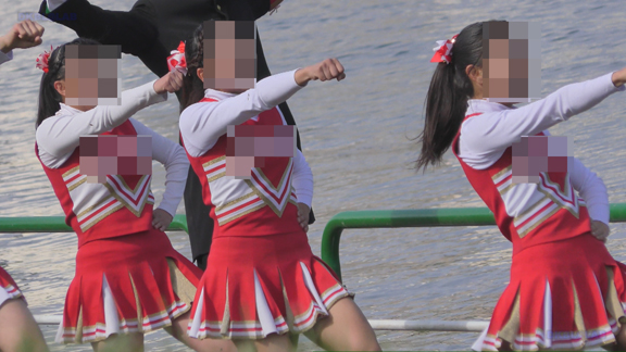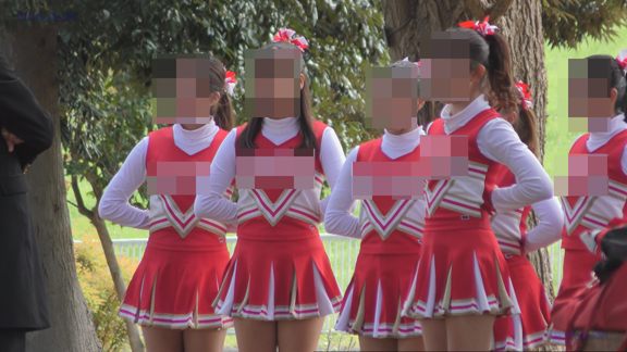 20分ごろより黒T・白チアユニ娘、白・緑チアユニ娘、紺・白チアユニ娘、緑・白チアユニ娘の応援演技のシーンへと続いてまいります!特に紺・白チアユニチームに密着!短め黒スパアンダーもGOOD!
