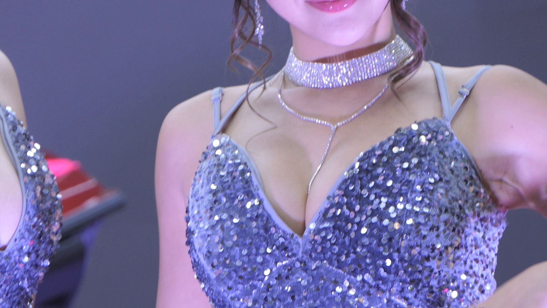 銀ドレスの可愛子ちゃん 胸の谷間ばっちり