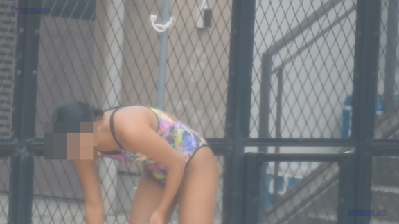 23分ごろより別日の練習会シーンへ、好天に恵まれたシチュエーション!髪をスイムキャップにIN!水のコンディションを確かめた後のち水中へドボン!練習タイムの幕開けです!!