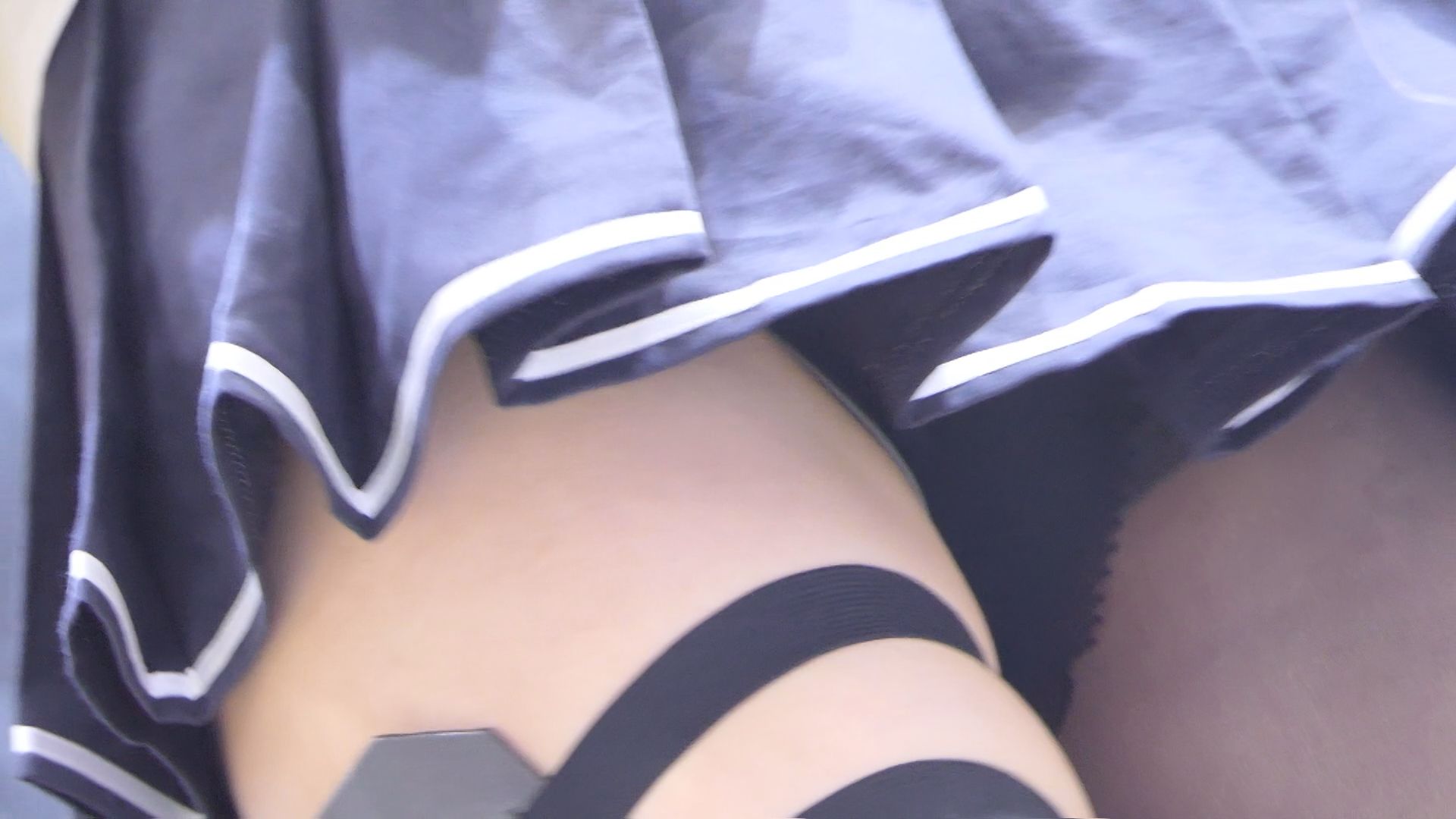 黒のプリーツミニスカレイヤーをがっちり撮影